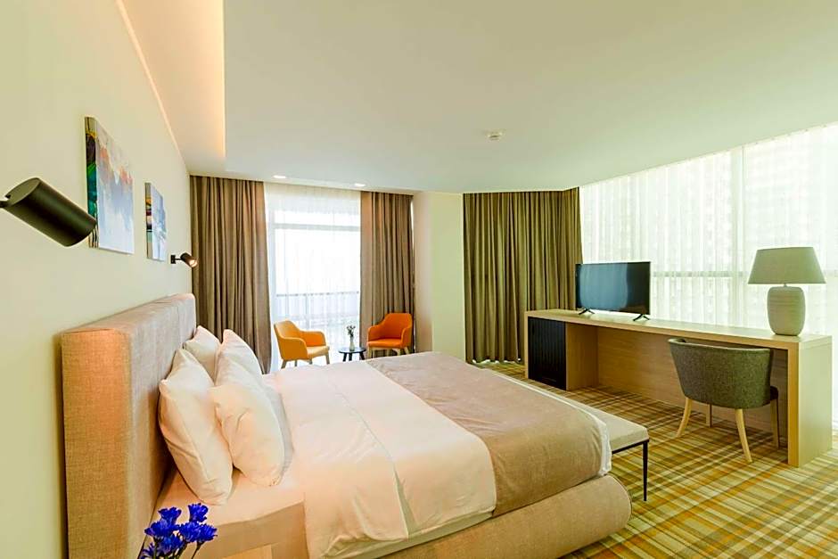 The spacious double room offers air conditioning, a tea and coffee maker, a safe deposit box, as well as a balcony. The unit offers 1 bed.